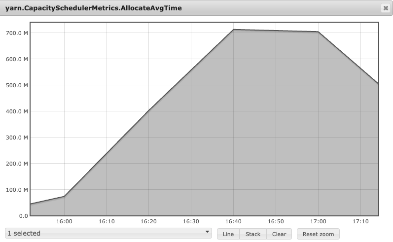 And I found some performance drop compared with the previous metrics, this could be shown in the capacityScheduler’s allocationTime. Previously, the average allocation time is 2ms. But now is 10ms. Luckily, performance don’t deteriorat to a level that was unacceptable to us. For us, 200ms is the threshold to make scheduler stable and quick.