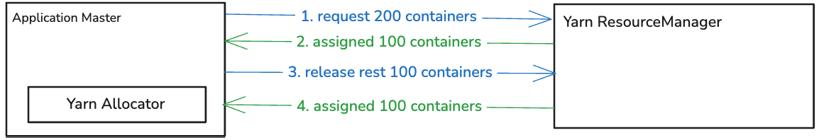 - if the latest target requirement < requests, spark will skip these allocated containers.